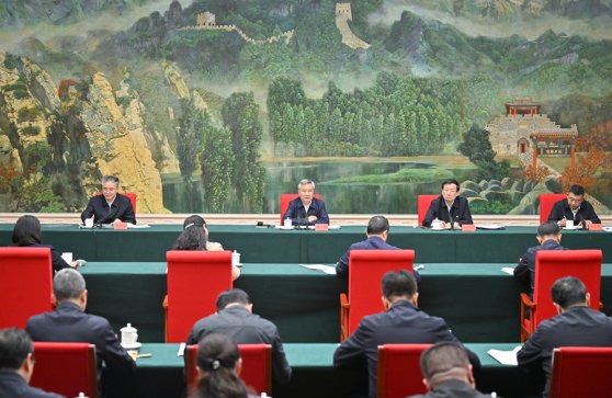 10月14日至16日,中共中央政治局常委、中央纪委书记李希到天津调研。这是10月16日,李希在天津主持召开座谈会。新华社记者 岳月伟 摄